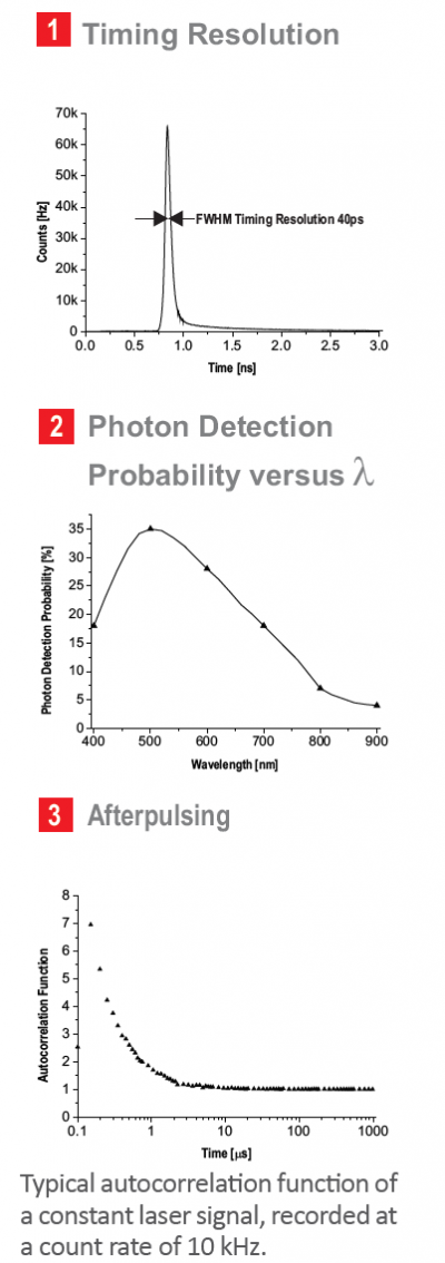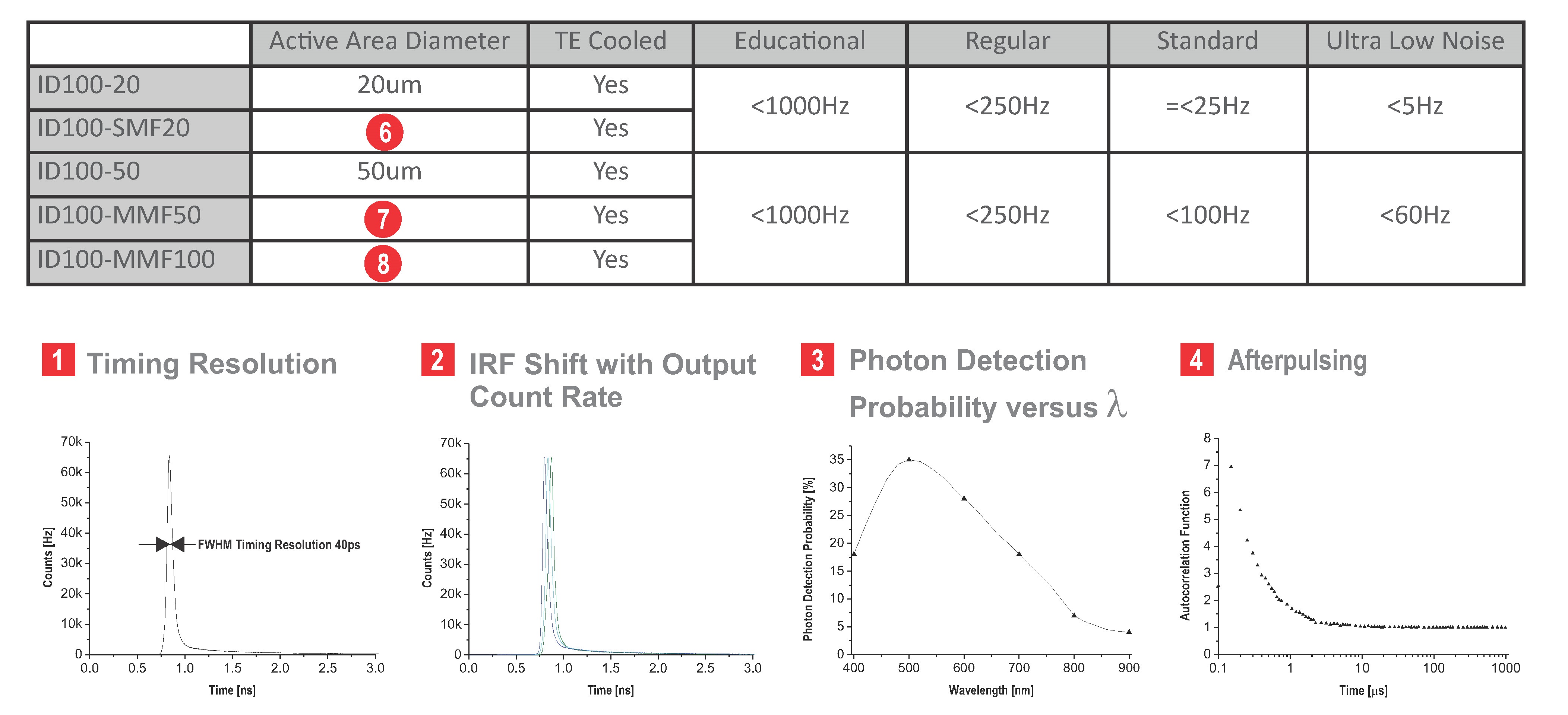 暗計數率: ID100探測器一共有四種級別:Educational(教學級),Regular(常規級),Standard(標準級)和Ultra-Low Noise(低噪聲級),主要取決于暗計數率的性能參數。