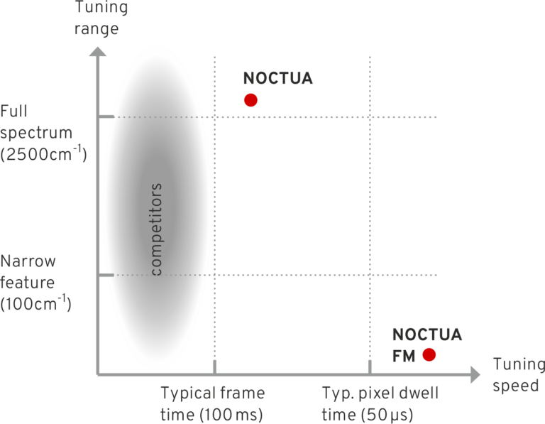 | NOCTUA受激拉曼顯微鏡系統具有低噪聲光譜調諧模式,可分辨尖銳的光譜共振,此功能在指紋光譜區域中特別有用。 | ![]() |