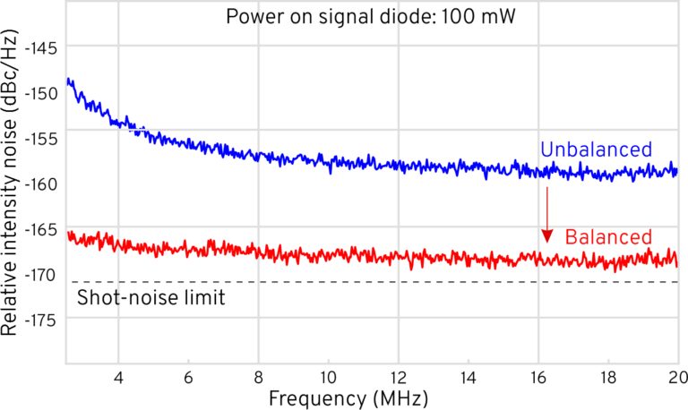 | 為了克服激光噪聲,這通常會阻止成像系統達到理論散粒噪聲極限,我們使用了平衡探測器。通過測量參考光束中的激光噪聲并在樣品后從SRS信號中減去它,噪聲被抵消,從而提高信噪比和成像速度。